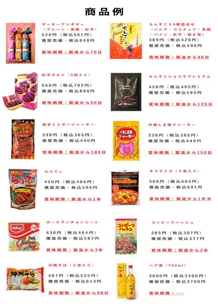 独自の買取保証システムにより、賞味期限が近づいた商品を「うちなーふぁん」がすべて買い取ります。これにより、店舗様は在庫リスクを抱えることなく、安心して魅力的な沖縄商品の販売に集中していただけます。
